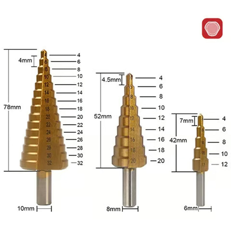ÉLES PAGODA FORMÁJA: Ez a készlet éles pagoda formájú kialakítással rendelkezik, amely csúszásmentes, hatékony fúrást tesz lehetővé. A lépcsőzetes kialakítás biztosítja a koncentrikus lyukak sima és pontos fúrását, megkönnyítve a professzionális eredmények elérését.