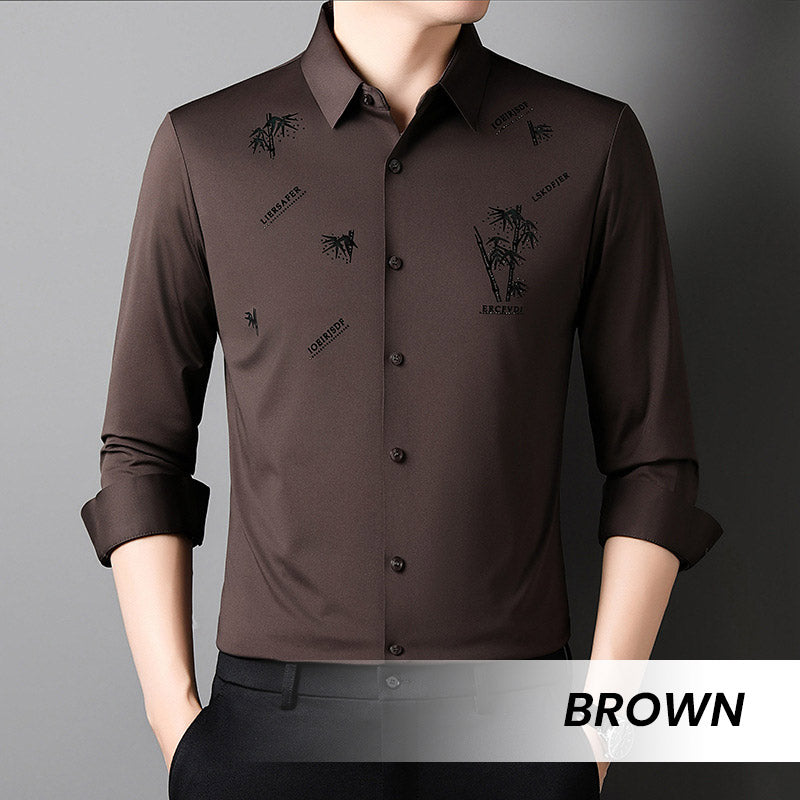 FINOM BAMBUSZNYOMTATÁS: A bambusznyomtatással díszített részlet természetes eleganciát kölcsönöz az ingnek, így alkalmas mind hétköznapi, mind üzleti környezetben való viselésre.