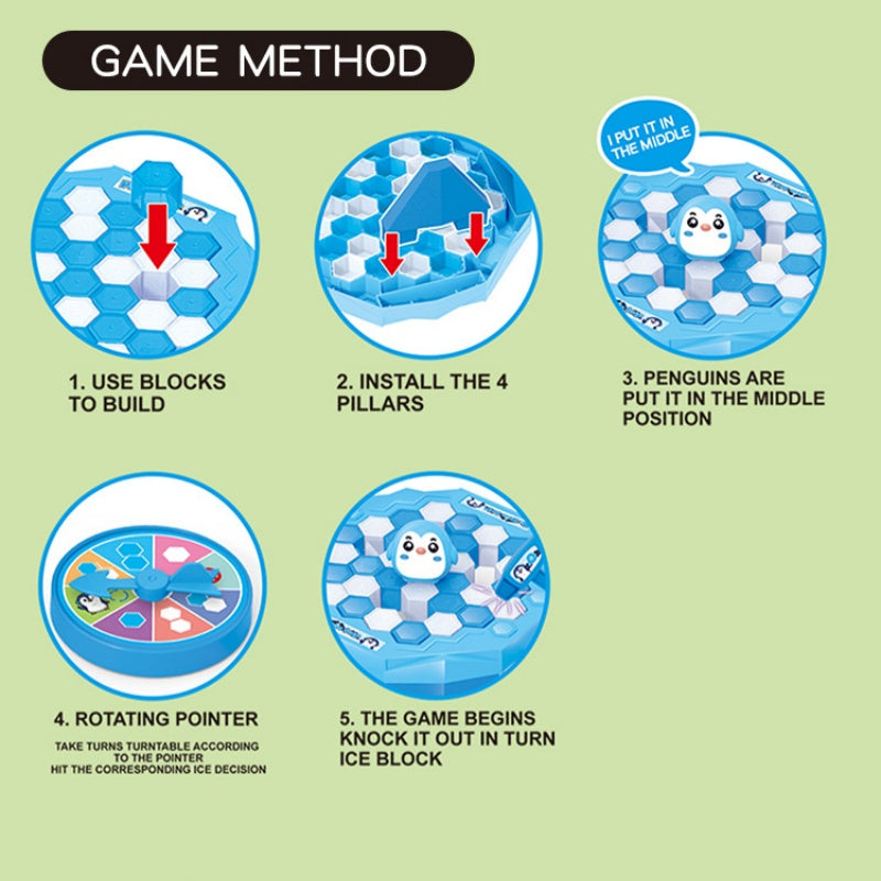 KÉZFEJLESZTŐ GYAKORLAT – Ez a játék elősegíti a finom motorikus képességek fejlődését azáltal, hogy ösztönzi a gyerekeket a kéz és a csukló mozgatására, elősegítve ezzel a kéz fejlődését. Amint a gyerekek forgatják a mutatót és leütik a jégtömböket, szórakoztató módon javítják koordinációjukat és ügyességüket.
