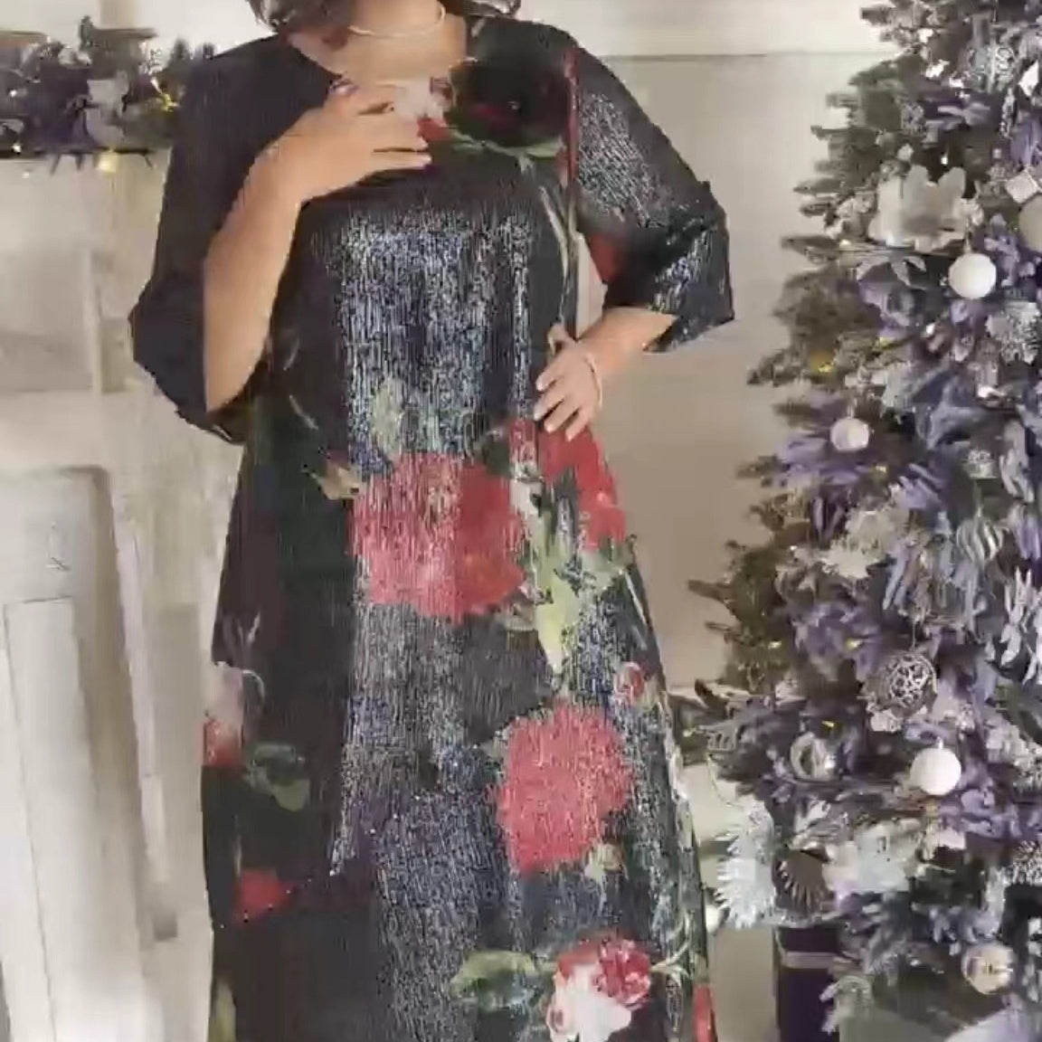 A csomag tartalma: 1* NĆi alkalmi kerek nyakĂș nyomtatott ruha