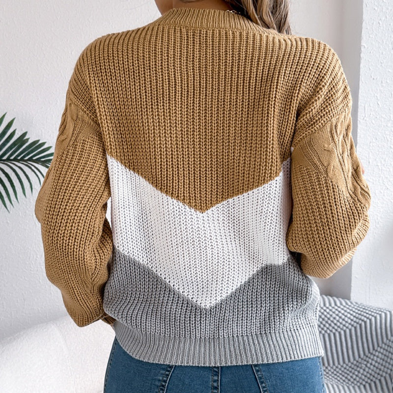 TRENDI SZÍNBOCK DÍSZÍTÉS: Ez a pulóver stílusos kontrasztos színű panelekkel készült, és modern alkalmi megjelenést kölcsönöz. Tökéletesen párosítható farmerrel, szoknyával vagy leggings-szel, és a mindennapi öltözékeket élénkíti, miközben divatos és elegáns marad.
