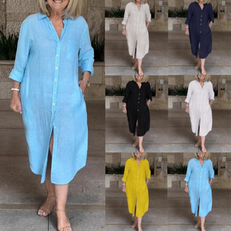 A csomag tartalmazza: 1 * NĆi alkalmi laza pamut vĂĄszon hosszĂș ing ruha