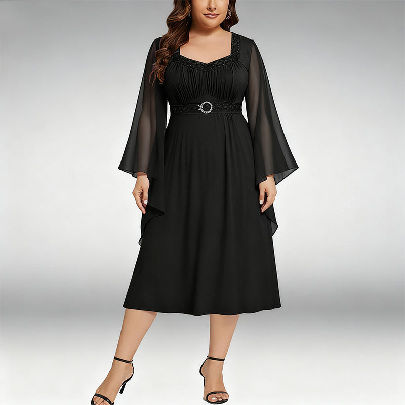 A csomag tartalma: 1 * nĆi magas derĂ©kĂș, tĂĄgas ujjĂș midi ruha