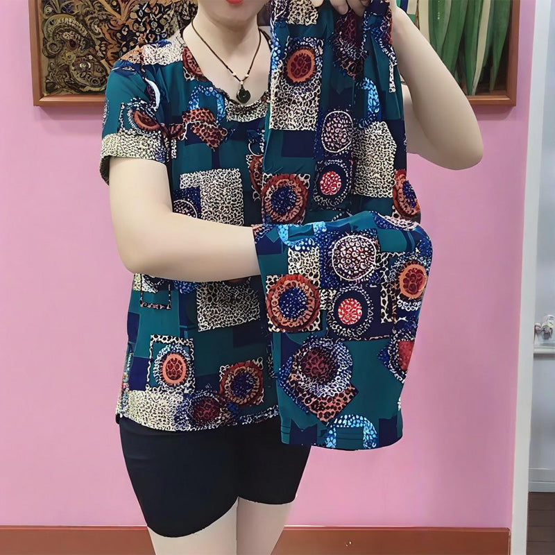 Привлекателен артистичен принт – горната част на блузата е с ярък принт по цялата повърхност, който съчетава перфектно ретро чар и модерни елементи.