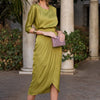 ELEGANT PLEATS: A ruha gyönyörű redőkkel rendelkezik a szoknya teljes hosszában, ami kifinomultságot és mozgást kölcsönöz a ruhának. Ezek a redők hízelgő sziluettet hoznak létre, amely minden testalkathoz gyönyörűen illeszkedik, így könnyedén elegánsnak tűnik.